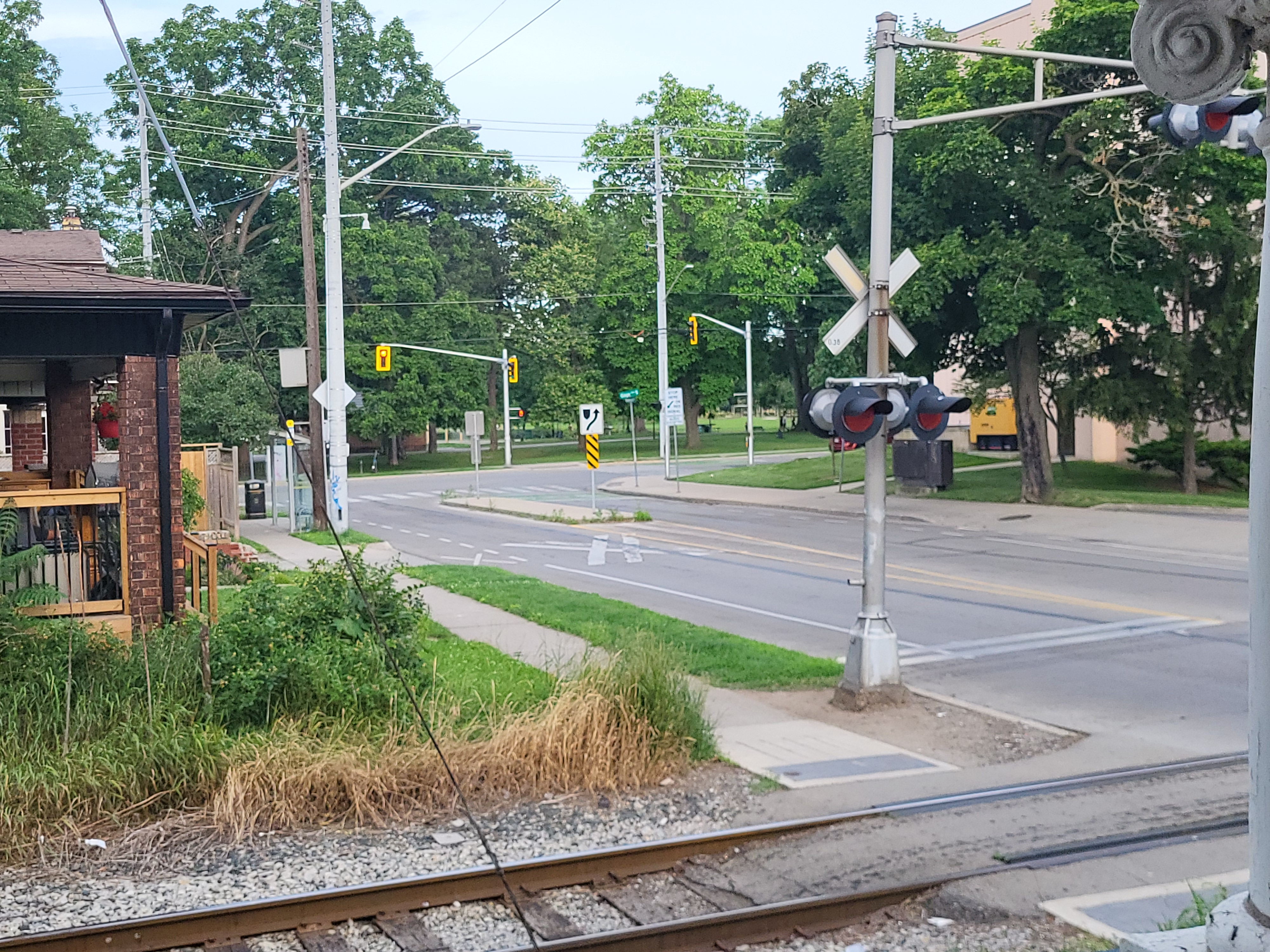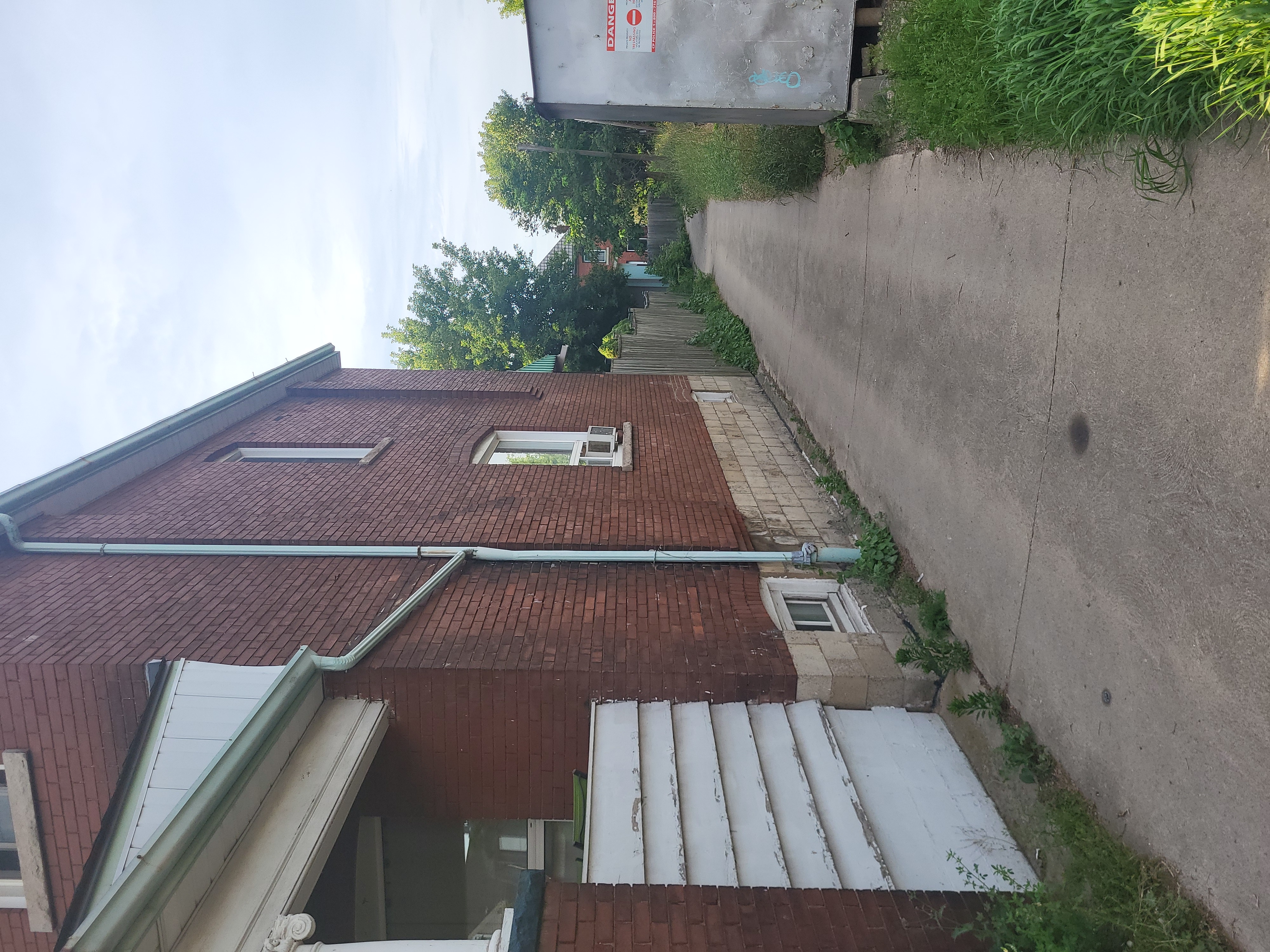 Alley beside the house, train tracks beside the alley, no neighbours on one side.
